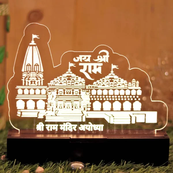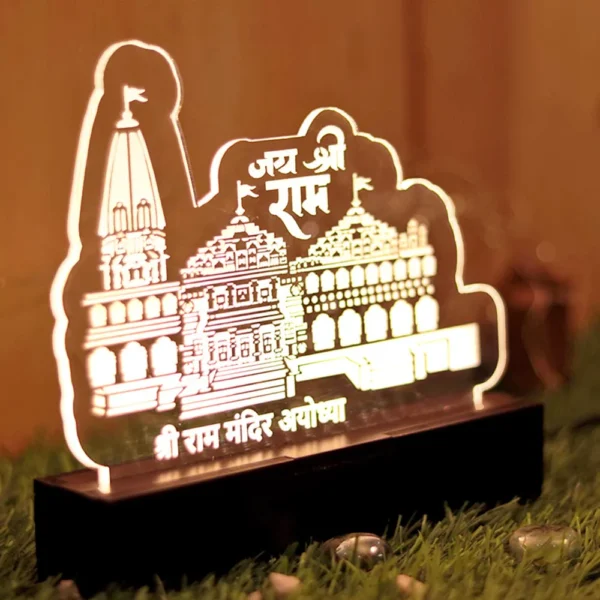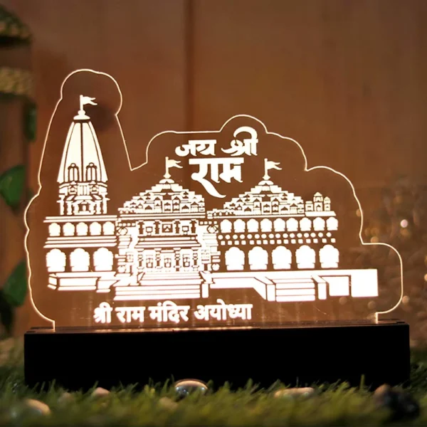 The 3D Acrylic Ram Mandir Table Lamp is a unique gift for religious festivals, housewarmings, and various occasions.